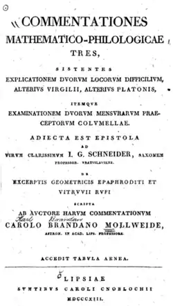 | Born | Karl Brandan Mollweide 3 February 1774 Wolfenbüttel, Lower Saxony, Germany |