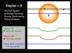 - 1 2 3 Holman, M. J.; et al. (2010). "Kepler-9: A System of Multiple Planets Transiting a Sun-Like Star, Confirmed by Timing Variations" (PDF). Science. 330 (6000): 51–54. Bibcode:2010Sci...330...51H. doi:10.1126/science.1195778. PMID 20798283. S2CID 8141085.
