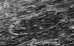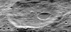 Khvolʹson is a crater on the far side of the Moon. It lies just to the east-southeast of the large walled plain Pasteur. Less than a crater diameter to the north-northeast of Khvolʹson is the crater Meitner, and just to the east-southeast lies Kondratyuk.