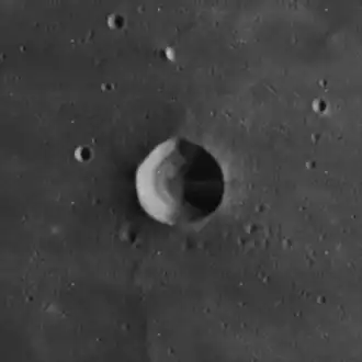 Kirch is a small lunar impact crater in the eastern part of the Mare Imbrium, a large lunar mare in the northwest quadrant of the Moon. It was named after German astronomer Gottfried Kirch.[1] This is a relatively solitary formation with the nearest comparable crater being Piazzi Smyth to the northeast. Notable features in the vicinity are the Montes Spitzbergen mountains to the south and the solitary peak Mons Piton to the east-northeast. Kirch is circular and bowl-shaped, with a dark interior having the same albedo as the surrounding terrain.