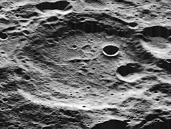 Kurchatov is a lunar impact crater that is located on the Moon's far side. It is just to the southwest of the crater Wiener, and farther to the southeast of Bridgman. A couple of crater diameters to the south of Kurchatov is the northern edge of the Mare Moscoviense.