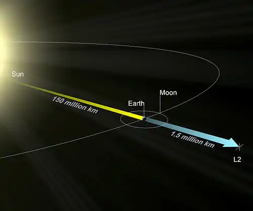- ↑ "L2 Orbit". Space Telescope Science Institute. Archived from the original on 3 February 2014. Retrieved 28 August 2016.