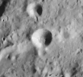 Lamèch is a small lunar impact crater that is located to the southwest of the prominent crater Eudoxus, at the eastern edge of the Montes Caucasus range. It was named after French selenographer Félix Chemla Lamèch.[1] This is a circular, bowl-shaped formation. The inner walls slope down to a small central floor that is about one-fourth the diameter of the crater. This formation is not notably eroded, and contains no other features of interest.