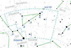 λ1 Phoenicis, Latinized as Lambda1 Phoenicis, is a double star[10] in the southern constellation of Phoenix. It is visible to the naked eye as a faint, white-hued point of light with a combined apparent visual magnitude of 4.76.[2] The system is located approximately 183 light years away from the Sun based on parallax.[1] It is a member of the Hyades Supercluster.[11]