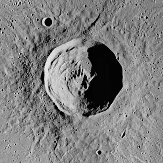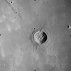 Lambert is a lunar impact crater on the southern half of the Mare Imbrium basin. It was named after Swiss polymath Johann Heinrich Lambert.[1] It lies to the east and somewhat south of the slightly larger crater Timocharis. To the south is the smaller Pytheas, and some distance to the west-southwest is Euler.