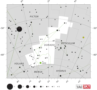 Constellation of Dorado: the LMC is the green circle at the south (bottom) of picture