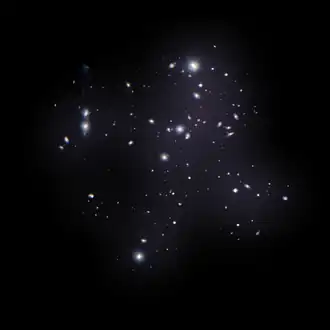 ![]() Leo Supercluster as seen from Earth with its component galaxies and intergalactic halo. | |