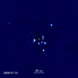 | HR 8799 d | 7.0 | 1.3 | 100 | 24.5 | 0.09 | 128 | 2008 | ADI, LOCI | |||