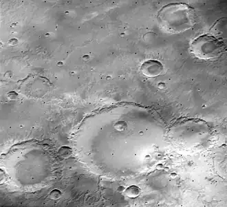 ![]() Viking Orbiter 1 image with Mädler at bottom center. The outflow channel is clearly visible at the bottom (west). | |