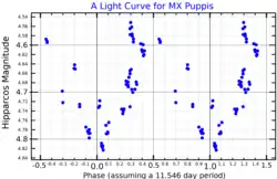 A light curve for MX Puppis, adapted from Hubert and Floquet (1998)[13]