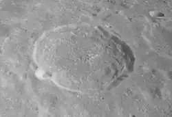 Macrobius is a prominent lunar impact crater located to the northwest of the Mare Crisium. Its diameter is 63 km. It was named after ancient Roman writer Macrobius.[2] It lies on the southeast edge of the Lacus Bonitatis, a small lunar mare. The somewhat smaller crater Tisserand lies just to the east.