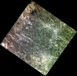 Regional approximate color view by MESSENGER, with Mahler along upper left margin
