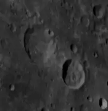 Malyy is a damaged lunar impact crater that lies on the far side of the Moon, behind the eastern limb as seen from the Earth. It is located to the south-southeast of the crater Artamonov. Slightly farther to the east-northeast lies Deutsch. The quadrant of terrain to the southwest of Malyy forms a nearly level plain marked by small craters and buried features.