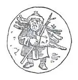 A longstanding European tradition holds that the man was banished to the Moon for some crime. Jewish lore says that the image of Jacob is engraved on the Moon.[1][2] Another held that he is the man caught gathering sticks on the Sabbath and sentenced by God to death by stoning in the Book of Numbers XV.32–36.[3] Some Germanic cultures thought he was a woodcutter found working on the Sabbath.[4] There is a Roman legend that he is a sheep-thief.