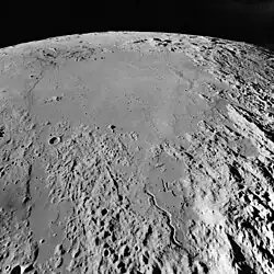 Oblique view facing south of Mare Vaporum from lunar orbit (Apollo 17)