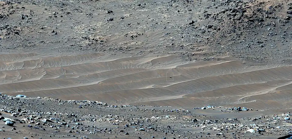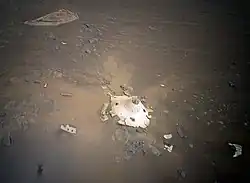- ↑ Chang, Kenneth (April 27, 2022). "NASA Sees 'Otherworldly' Wreckage on Mars With Ingenuity Helicopter - The debris was part of the equipment that helped the Perseverance mission safely land on the red planet in 2021". The New York Times. Retrieved April 28, 2022.