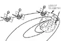 On August 24, 1993, Mars Observer would turn 180 degrees and ignite the bipropellant thrusters to slow the spacecraft, entering into a highly elliptical orbit. Over the next three months, subsequent "transfer to lower orbit" (TLO) maneuvers would be performed as the spacecraft reached periapsis, eventually resulting in an approximately circular, 118-minute orbit around Mars.[23]