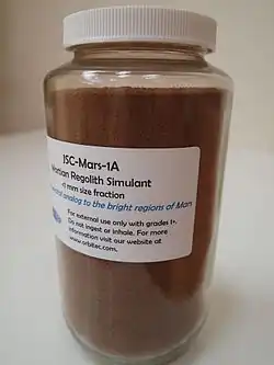 - ↑ Allen, C. C.; Morris, R. V.; Lindstrom, D. J.; Lindstrom, M. M.; Lockwood, J. P. (March 1997). JSC Mars-1: Martian regolith simulant (PDF). Lunar and Planetary Exploration XXVIII. Archived from the original (PDF) on 10 September 2014. Retrieved 28 April 2014.