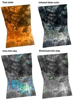 - ↑ Murchie, S.; et al. (2009). "A synthesis of Martian aqueous mineralogy after 1 Mars year of observations from the Mars Reconnaissance Orbiter" (PDF). Journal of Geophysical Research. 114 (E2): E00D06. Bibcode:2009JGRE..114.0D06M. doi:10.1029/2009je003342.