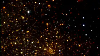 Mercer 3, also known as GLIMPSE-C02, is a heavily obscured globular cluster embedded in the disk of the Milky Way galaxy.[1] It was discovered in 2008 in the data obtained by 2MASS and GLIMPSE infrared surveys, and independently characterized by two groups.[1][2] The cluster is located in the Scutum constellation. It had avoided detection for such a long time due to the extremely strong foreground extinction in its direction reaching 24 magnitudes in the visible light. Mercer 3 is probably situated at the distance from 4 to 8 kpc from the Sun and has a half-light radius of 0.7–1.5 pc.[1]