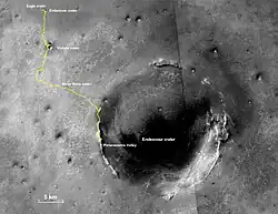 - ↑ "Opportunity's Final Traverse Map". Archived from the original on 2022-07-17. Retrieved 2022-07-30.