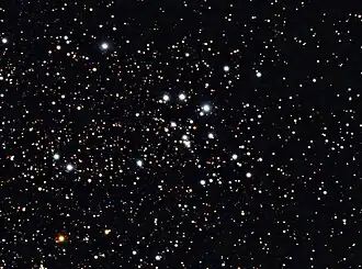 This is a sparse[9] cluster with a linear diameter of 8.04 pc,[5] a tidal radius of 7.3 pc,[6] and is centrally concentrated with core radius of 0.012 pc.[10] It has a Trumpler class of II 3 p.[4] The cluster is 33[6] million years old with an estimated mass of 188 M.[5] It has one definite Be star and 29 B-type stars in total.[9] There are three supergiant stars, all of class A or earlier.[11] The brightest component (lucida), designated HD 168352, is a B-type giant star with a class of B2 III and a visual magnitude of 8.65.[4]