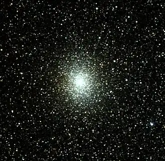 This cluster contains an estimated 1,100,000 times the mass of the Sun[3] and it is around 11.9 billion years old.[5] The stellar population includes four Cepheids and RV Tauri variables, plus at least one RR Lyrae variable for which a period is known.[10] Observations made during the ROSAT mission failed to reveal any low-intensity X-ray sources.[11]