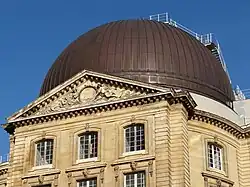 The dome building took about ten years of construction from 1880 to 1890.[6] The site has a long history going back to a summer palace designed by Le Primatic, then a summer Palace of the Grand Dauphin by the end of the 17th century; some expansion were done by Jules Hardouin-Mansart.[6] The old château Vieux was replaced by the château Neuf, which was used until the Franco-Prussian War of 1870.[6] The usuefull location meant the sites involvement in the activities of that war, and by the end it was left ruin.[6] On these ruins Janssen was able to use location for the new observatory, that would house the great telescope.[6]