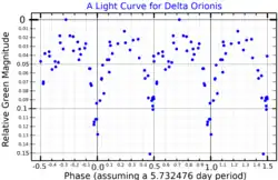 - ↑ Koch, R. H.; Hrivnak, B. J. (August 1981). "A photometric study of the close binary delta Orionis A". Astrophysical Journal. 248: 249–255. doi:10.1086/159148. Retrieved 14 July 2022.