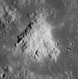 Mons Hansteen is a mountain on the Moon, also known as Hansteen Alpha (α), named after Christopher Hansteen. It is roughly triangular in shape and occupies an area about 30 km across on the western margin of Oceanus Procellarum, southeast of the crater Hansteen and north of the dark-floored crater Billy. It is thought to be an extrusion of volcanic material that is younger than the crater Hansteen, with most of surface volcanic ash been deposited 3.5-3.74 billion years ago.[1]