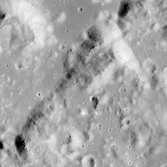 Mons Vitruvius is a mountain on the Moon that is located in the Montes Taurus region just to the north of Mare Tranquillitatis and to the southeast of Mare Serenitatis. This massif is located at selenographic coordinates of 19.4° N, 30.8° E, and it has a diameter across the base of 15 km. It rises to a maximum height of about 2.3 km near the northeastern end. This mountain was named after the nearby crater Vitruvius,[1] located to the south-southeast. The eponym for this crater is ancient Roman engineer and architect Marcus Vitruvius Pollio.[2]