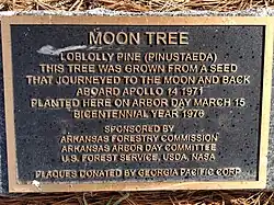 Moon trees are trees grown from seeds taken into orbit around the Moon, initially by Apollo 14 in 1971, and later by Artemis I in 2022.[1] The idea was first proposed by Edward P. Cliff, then the Chief of the United States Forest Service, who convinced Stuart Roosa, the Command Module Pilot on the Apollo 14 mission, to bring a small canister containing about 500 seeds aboard the module in 1971. Seeds for the experiment were chosen from five species of tree: loblolly pine, sycamore, sweetgum, redwood, and Douglas fir.[2][3] In 2022, NASA announced it would be reviving the Moon tree program by carrying 1,000 seeds aboard Artemis I.[4]