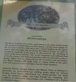 - ↑ "Moon Tree Continues to Thrive at Lincoln State Park". Friends of Lincoln State Park. June 22, 2020. Retrieved June 26, 2022.