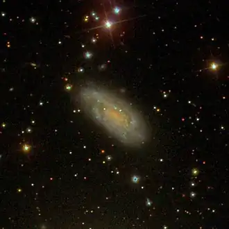 NGC 1160 is a spiral galaxy approximately 116 million light-years away from Earth in the constellation of Perseus.[3] It was discovered, along with NGC 1161, by English astronomer William Herschel on October 7, 1784.[4]