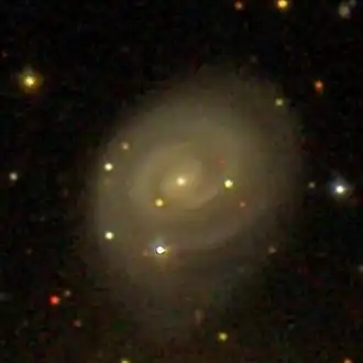 NGC 1268 is a spiral galaxy located about 140 million light-years away[2] in the constellation Perseus.[3] It was discovered by astronomer Heinrich d'Arrest on February 14, 1863.[4] NGC 1268 is a member of the Perseus Cluster[5][4] and appears to show signs of distortion in the form of bridges.[5] These features may be the result of a strong interaction with NGC 1267.[5][4]