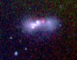 Until 2014, not much was known about the galaxy, other than the fact it was irregular. In early 2014, the galaxy was observed with a 2-foot telescope at the SARA remote observatory in Chile, revealing the galaxy in higher resolution. It appears the galaxy is in the process of forming stars at a high rate - primarily in the red areas in the image. Additionally, the galaxy has several small clumps of stars, implying an ongoing merger.[3]