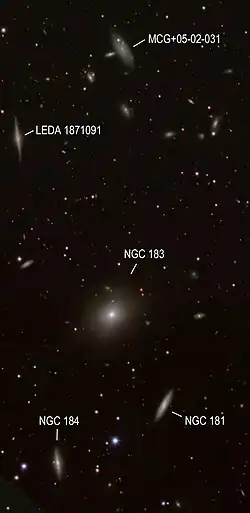 NGC 183 is an elliptical galaxy located in the constellation Andromeda. It was discovered on November 5, 1866, by Truman Safford.[2]