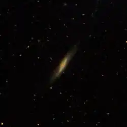 NGC 3005 is an edge-on spiral galaxy in the constellation of Ursa Major,[5] discovered by Bindon Stoney on January 25, 1851.[6] It is a member of the NGC 2998 group, which also includes NGC 2998, NGC 3002, NGC 3006, NGC 3008, and a few others.[7][8]