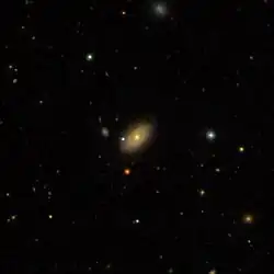 NGC 3008 is a lenticular galaxy with an active galactic nucleus[3] in the constellation of Ursa Major,[4] discovered by William Parsons and his assistants.[5] It is about 40 thousand light years across, and with a recessional velocity of about 4,785 kilometers per second,[5] is at a distance of 240 million light-years from the Sun.[1]