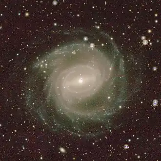 NGC 3313 is a large barred spiral galaxy[2][3] located about 55 megaparsecs (180 million light-years) away in the constellation Hydra.[4] It was discovered by astronomer Ormond Stone in 1886[5][6] and is an outlying member of the Hydra Cluster.[7]