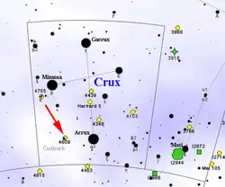 NGC 4609 (also known as Caldwell 98) is an open cluster of stars in the southern constellation of Crux. It was discovered on May 12, 1826 by the Scottish astronomer James Dunlop.[4] The cluster has an apparent visual magnitude of 6.9[2] and spans an angular size of 6.5′.[1] It is situated beyond the Coalsack Nebula[5] at an estimated distance of 4,500 ly (1,379 pc) from the Sun.[1]