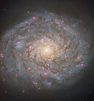NGC 4689 is a spiral galaxy located about 54 million light-years away[2] in the constellation of Coma Berenices.[3] NGC 4689 is also classified as a LINER galaxy.[2] NGC 4689 is inclined at an angle of about 36° which means that the galaxy is seen almost face-on to the Earth's line of sight.[4] NGC 4689 was discovered by astronomer William Herschel on April 12, 1784.[5] The galaxy is a member of the Virgo Cluster.[6][7]