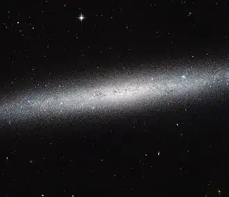NGC 5023 is an edge-on spiral galaxy located in the constellation Canes Venatici. It is considered a member of the M51 Group although it is actually relatively isolated from other galaxies.[2] It is approximately 15 kiloparsecs (49,000 light-years) across and contains more than 200 stars with an apparent magnitude of greater than 23.5.[1]