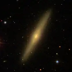At a distance of about 100 million light-years (30 megaparsecs), NGC 5422 is located within the sparse NGC 5485 group, which is dominated by lenticular galaxies.[3] It has only a single, thick, disk component. Like other galaxies in the group, it has no recent star formation, as its stellar disk is relatively old (about 10 billion years old). Its disk appears similar to the face-on galaxy NGC 6340, but appears edge-on.[3]