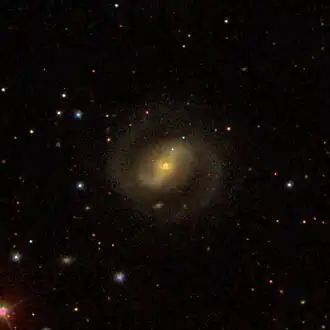 NGC 561 is a barred spiral galaxy located in the constellation Andromeda.[3] Its speed relative to the cosmic microwave background is 4,395 ± 20 km/s, which corresponds to a Hubble distance of 64.8 ± 4.6 Mpc (~211 million ly).[4] NGC 561 was discovered by Prussian astronomer Heinrich d'Arrest in 1862.[5]