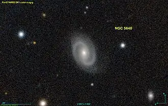 NGC 5640 is a spiral galaxy approximately 660 million light-years away from Earth in the constellation of Camelopardalis.[1] It was discovered by British astronomer William Herschel on December 20, 1797.[3]