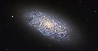 NGC 5949 is a dwarf spiral galaxy located around 44 million light-years away in the constellation Draco.[2][3][4] NGC 5949 was discovered in 1801 by William Herschel, and it is 30,000 light-years across. NGC 5949 is not known to have an active galactic nucleus, and it is not known for much star-formation.[3]