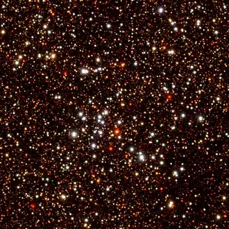 NGC 6031 is an open cluster of stars in the constellation Norma. It has a Trumpler classification of II 2p[3] and an age of about (250 ± 100) × 106 years. The abundance of iron in this cluster matches the abundance in the Sun, indicating that the metallicity of the cluster is essentially solar.[2]