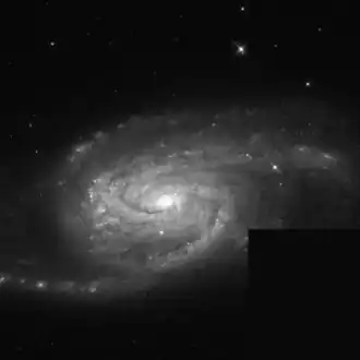 NGC 6181 is a barred spiral galaxy located in the constellation Hercules. It is designated as SB(rs)c in the galaxy morphological classification scheme and was discovered by William Herschel on 28 April 1788.[2] The galaxy is 107 million light years away.[1][3]
