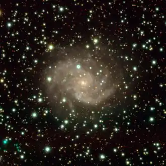 NGC 6215 (also known as PGC 59112) is a spiral galaxy located in the constellation Ara. It is designated as SA(s)c in the galaxy morphological classification scheme. It was discovered by astronomer John Herschel on 9 July 1836.[1][2][3]